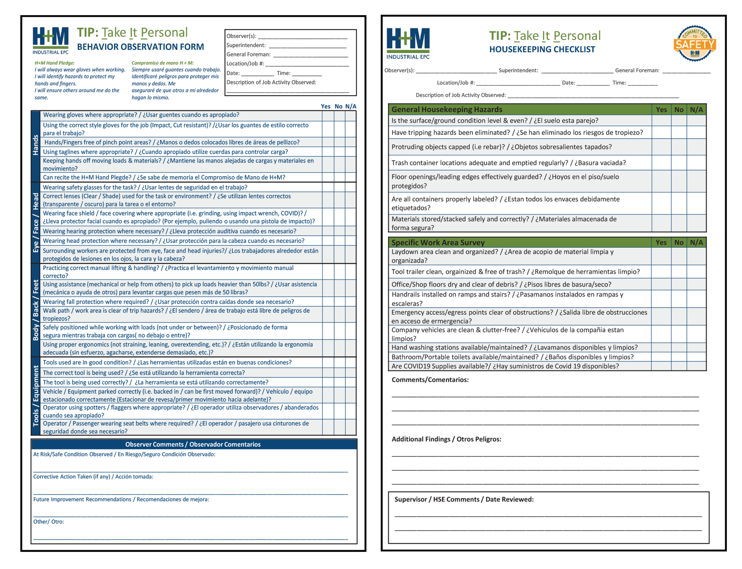 Below is a real life example of a way to identify and track observations during a Behavior-Based Safety process, the H+M TIP Behavior Observation Form.